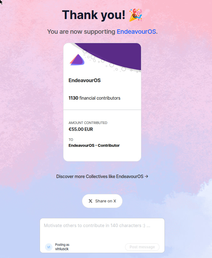 @ricklinux, I just donated 55 EUR to EOS, unfortunately it didn’t have an explicit way to mention your username too in the donation, but this post here is the receipt that it was done because of your help and suggestion, so please consider this donation as yours. Thanks