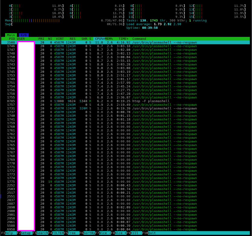 I’m not sure how to get htop’s information on this forum. i shall provide an edited screenshot. In contrast, firefox with hundreds (im serious) of tabs open is using less than 3%.