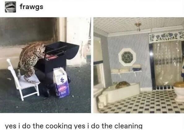 she made a horizontal kettle grill, a bag of kingsford coals, and an apartment for the frog?
