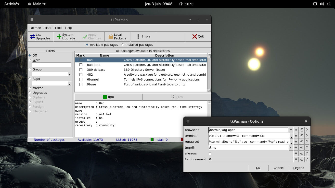 Description : A lightweight GUI for pacman built with Tcl/Tk