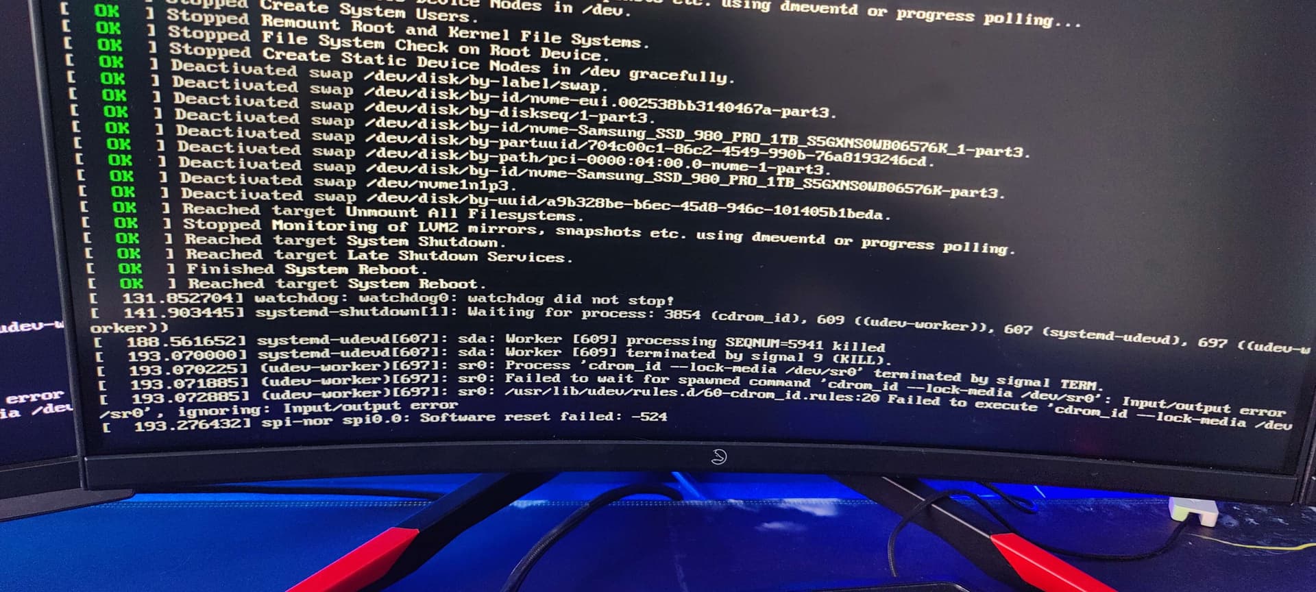 I installed it from a fresh bootable USB key of EndeavourOS this weekend and the errors showed right away. I’m obliged to physically force shutdown the computer as it hangs like that forever.
