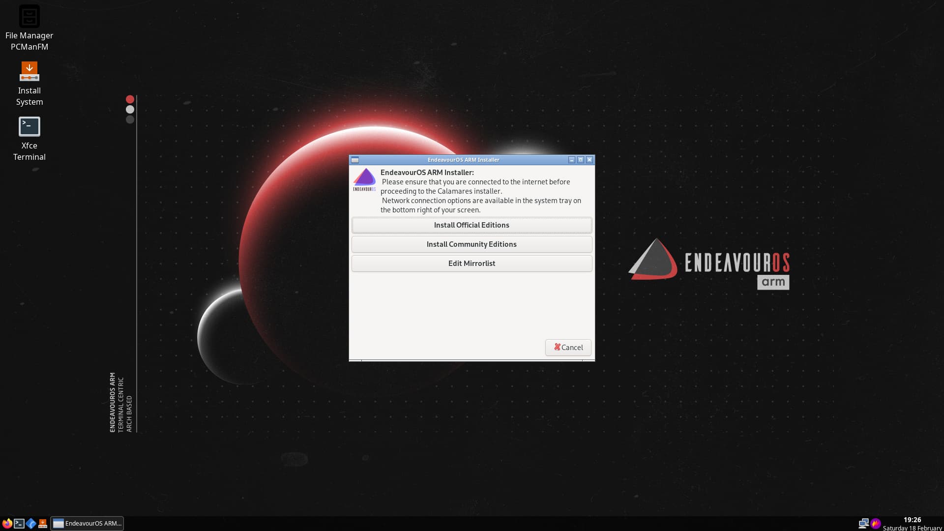 Then a modified Calamares is launched which is quite similar to the x86_64 Calamares.