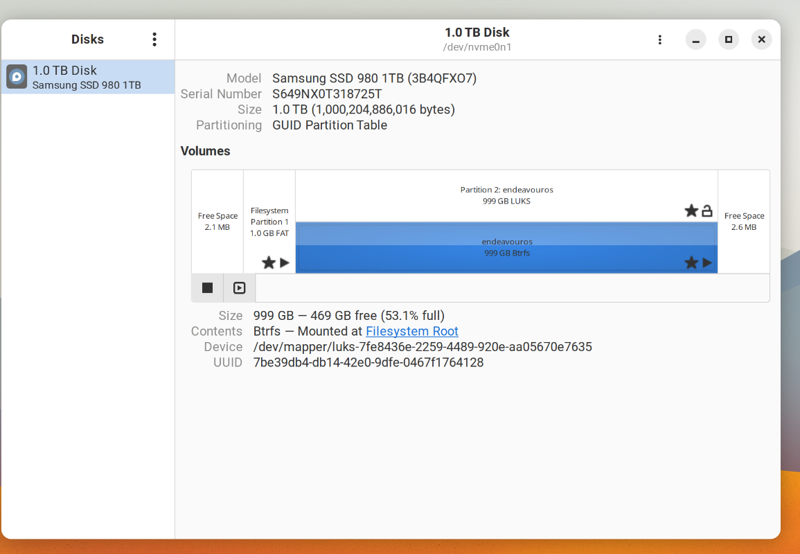 FYI, I have a 1TB NVMe drive with LUKS enabled, with snapper, snap-pac, and btrfs-maintenance installed.