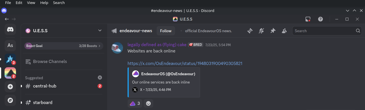 I also would like it if discord showed notification badges but that seems like something I can’t do with my current taskbar setup (pretty similar to windows, planned to change once I know the OS better)