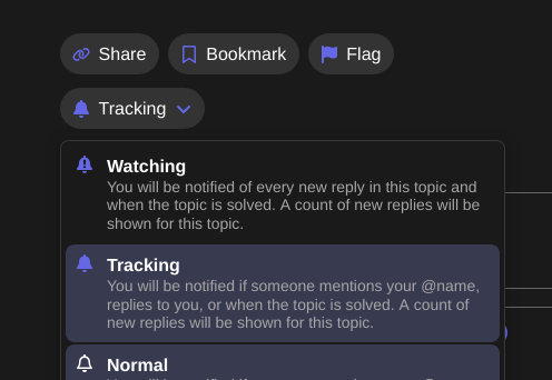 Notify when a topic that I am Tracking or Watching is solved. Only applies to topics in categories that allow solutions