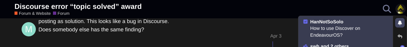 when logging in the forum this morning I got the notification that I solved two topics but I even did not write any post in those threads. ![]()