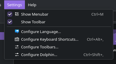 does anyone know how can I make the menu in dolphin show always? I just switched from Gnome to KDE version and I searched for about an hour how to get the menu in dolphin beeing shown always.