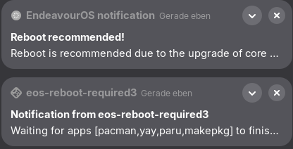 since a weelk or so I get two notifications in GNOME Notification center after a (Kernel) Update.