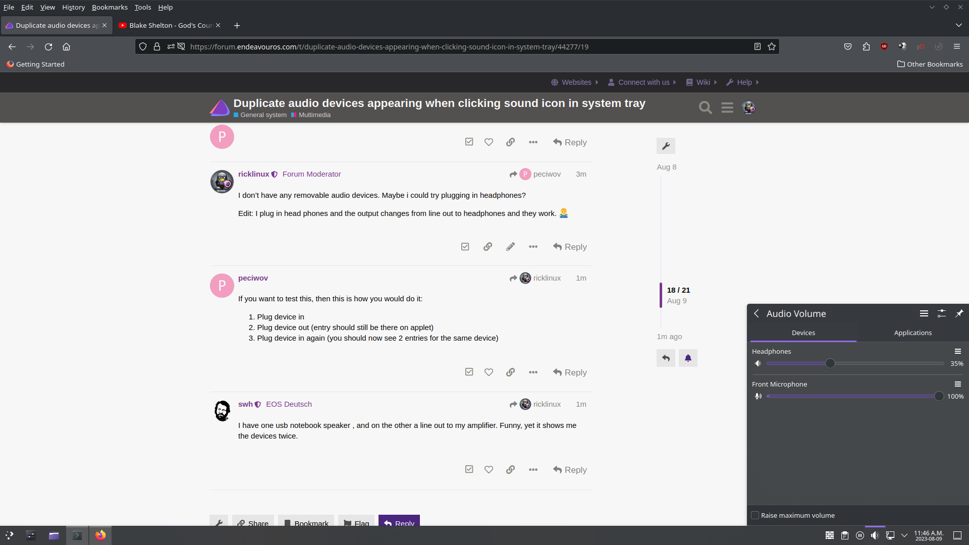 I just installed zen kernel and i have no issue. When i plug headphones in it changes from line out to headphones. ![]()
