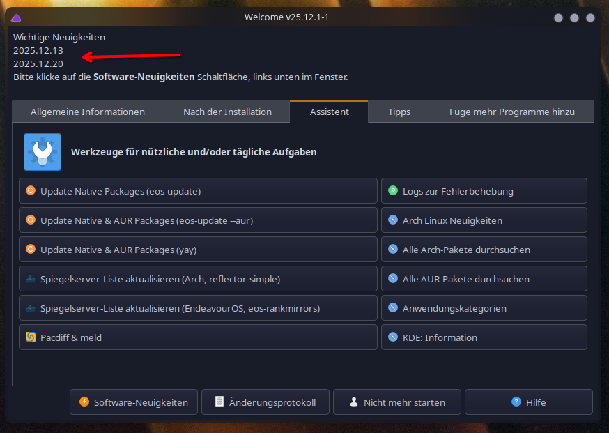 so if you are gone for a while its best to still somewhat keep up with the news, or at least when you then come home and turn on the laptop or pc, before you update look if there is a important notification here on the welcome screen: