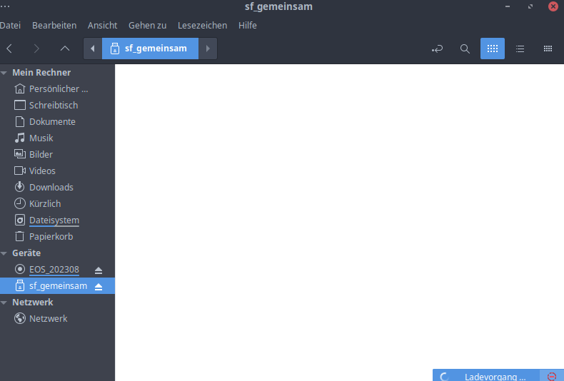 mit Kernel 6.5.5 —> der gemeinsame Ordner funktioniert wie es sein soll.