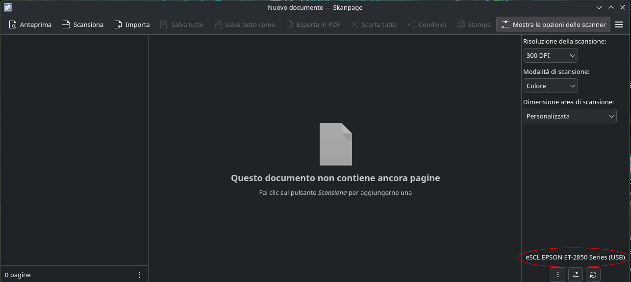 I’ve noticed something strange. I installed the printer drivers (epson-inkjet-printer-escpr) and activated the printer via USB. The printer works, prints, and the scanner is recognized by Skanpage. The scanner works there too.
