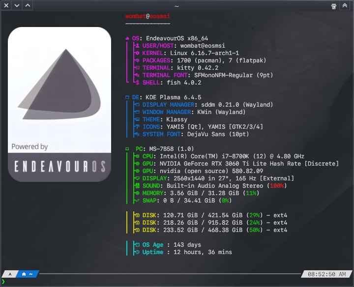 Odd. When I make a change to either Kitty’s config or the Fastfetch config, I just save, and restart Kitty. Never had to log out or reboot.