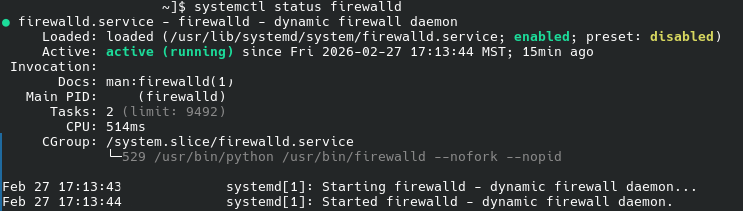 # systemctl enable --now firewalld