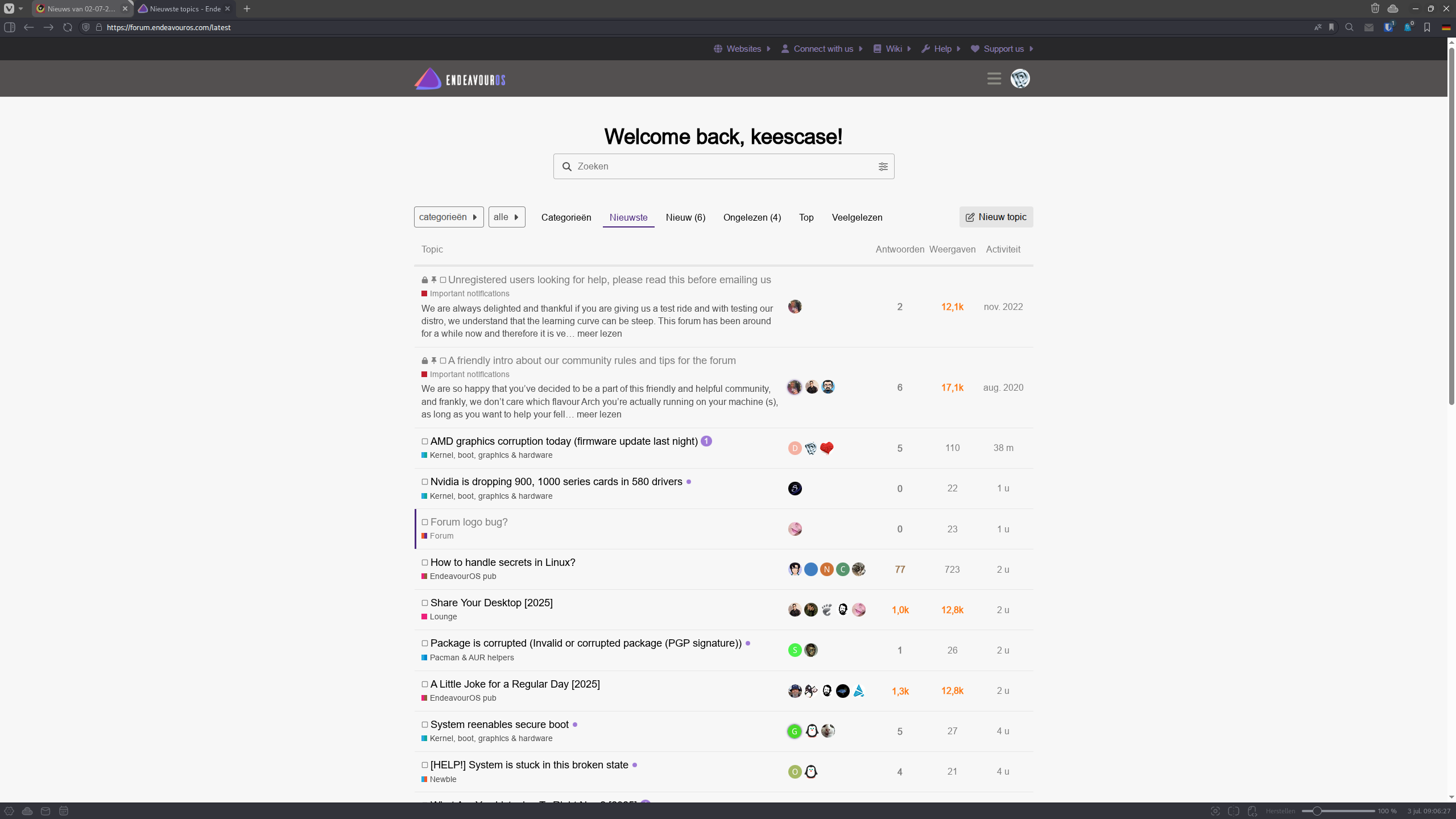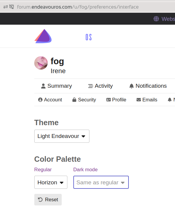 Thank you for notifying. The Horizon theme is a new, default theme provided by the recent Discourse software version. This theme cannot be changed and overrides custom-made themes, which Endeavour dark and light are.