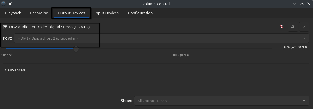 I can’t see any DG2 audio controllers in my pavucontrol program only a rembrandt radeon which is probably my CPU onboard graphicscard I am assuming?