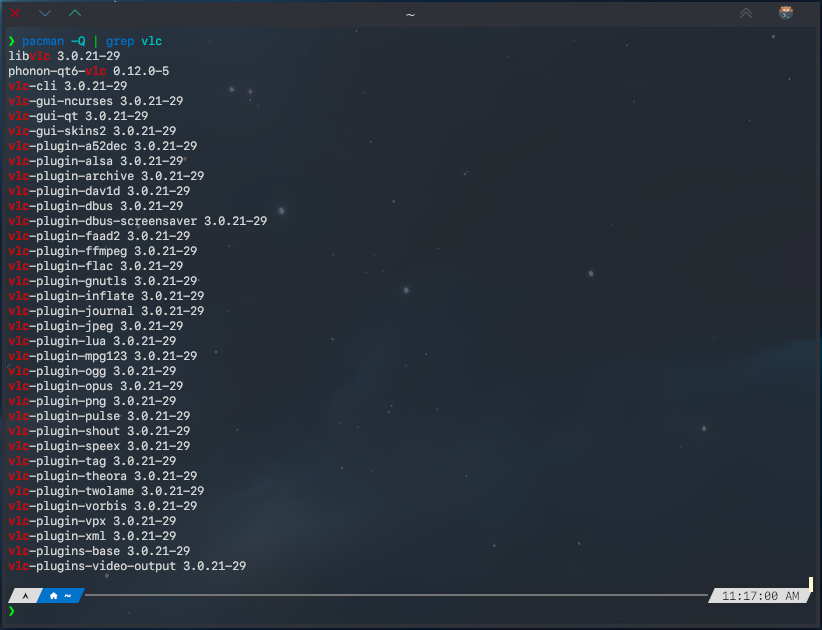 ❯ pacman -Q | grep vlc