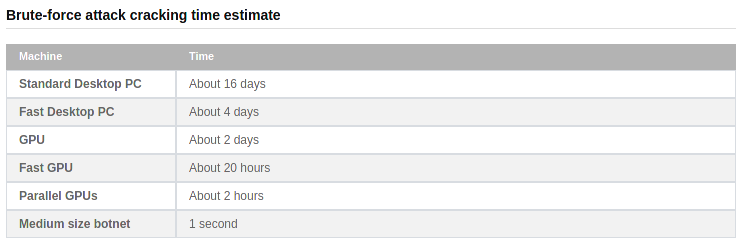 16 numbers is apparently not easier to crack than 8 random characters… so length is indeed a bigger deal. I thought that 16 from ten characters would be much weaker than 8 from 96… However, when creating my own passwords, I make a lengthy phrase and then find creative ways to mis-spell it.