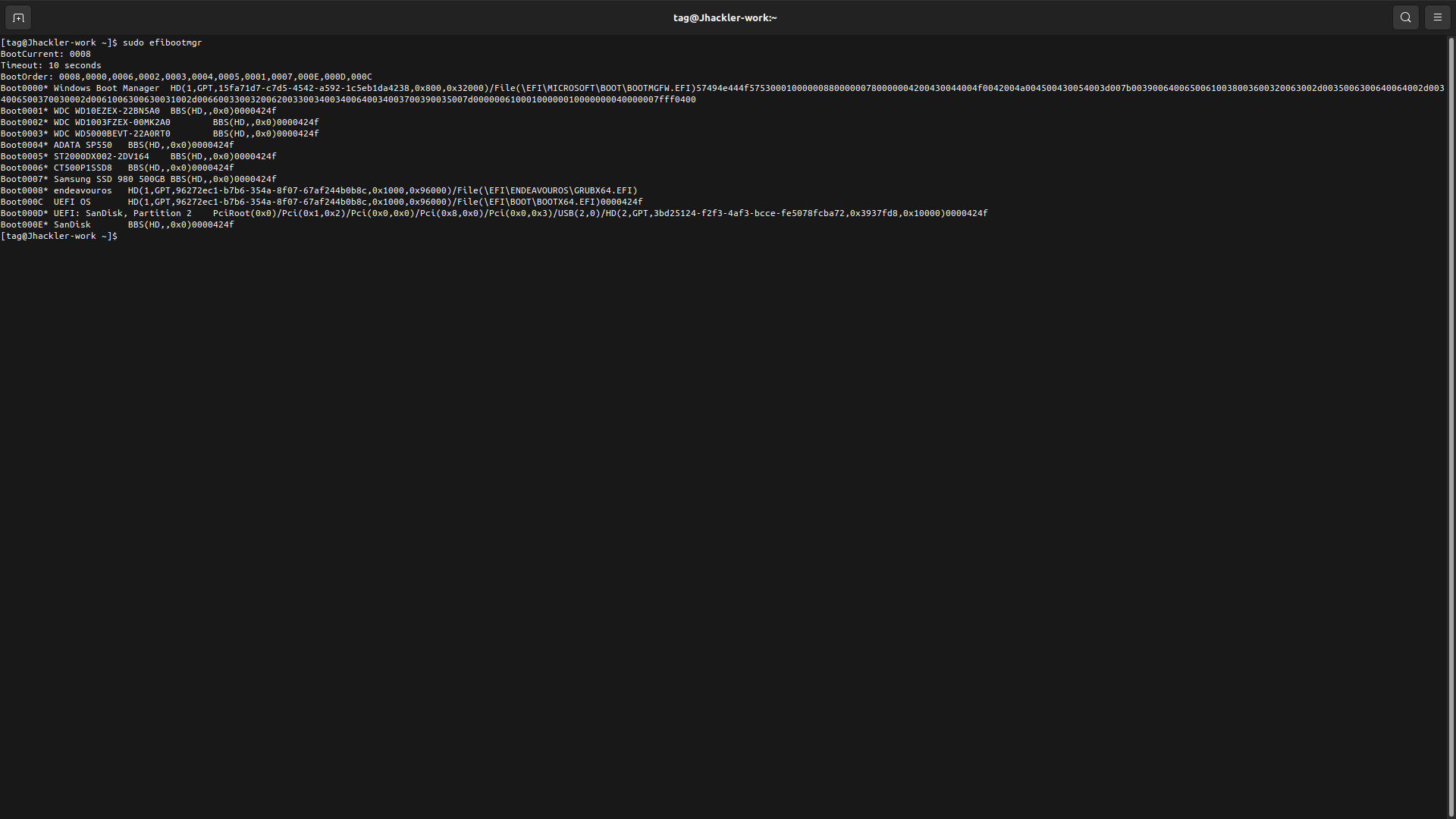 so in this example would I run efibootmgr -b C -B or which entries should be removed c has the name of the one that when manually selected drops to recovery 0008 is the current one that I have to manual select despite being first boot option which I thing would be efibootmgr -b 8 -B if I wanted to delete (which obviously I don’t)
