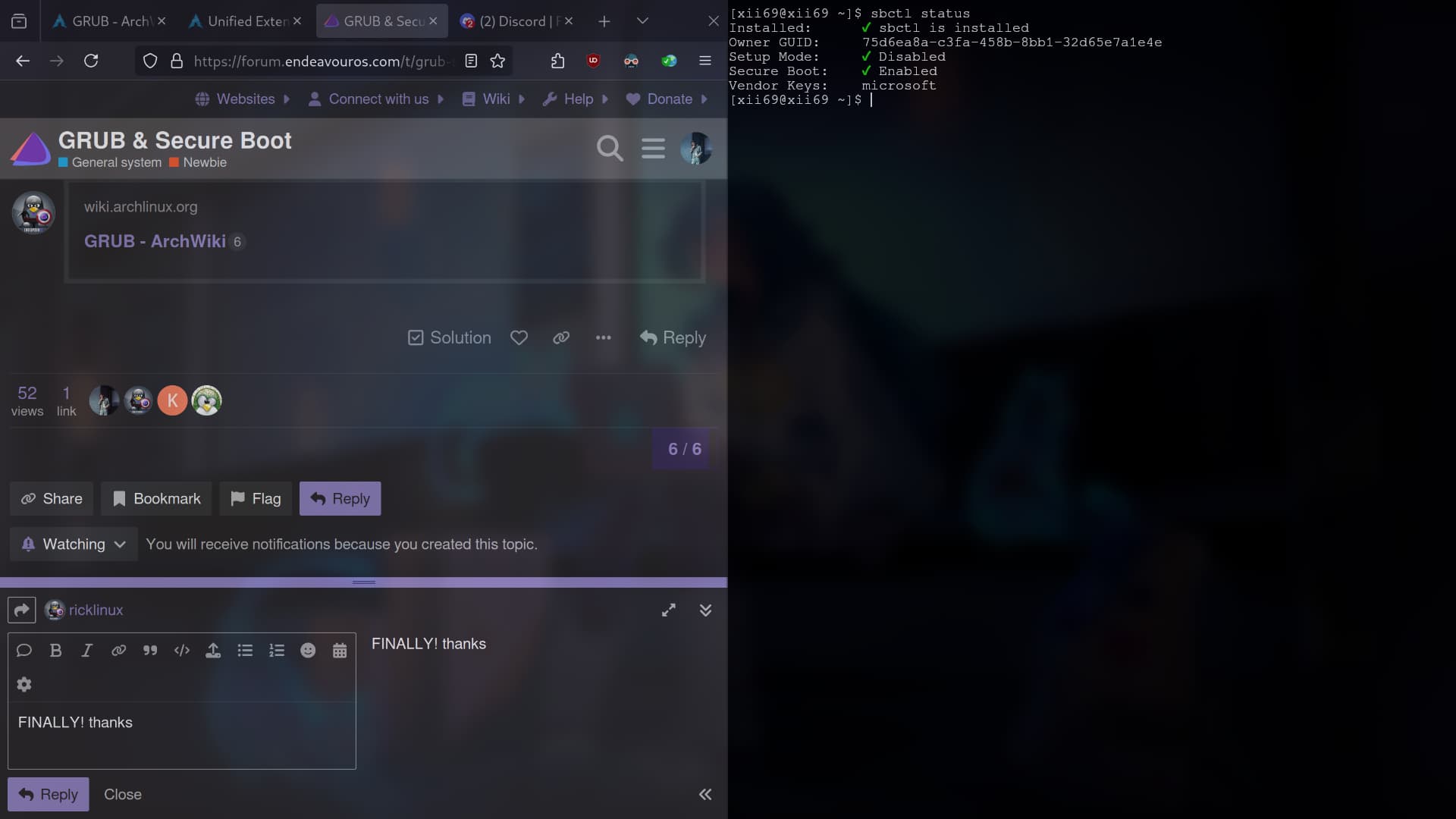 I’ve lost count of how many times I’ve asked for help here or in other communities. No matter what I do, I can’t seem to get GRUB working with Secure Boot. Every time I install Linux, I encounter the error: “error: prohibited by secure boot policy” when trying to boot into GRUB with Secure Boot enabled.