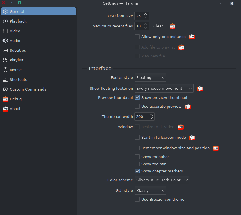 But I agree it has too few options exposed in the Haruna settings.