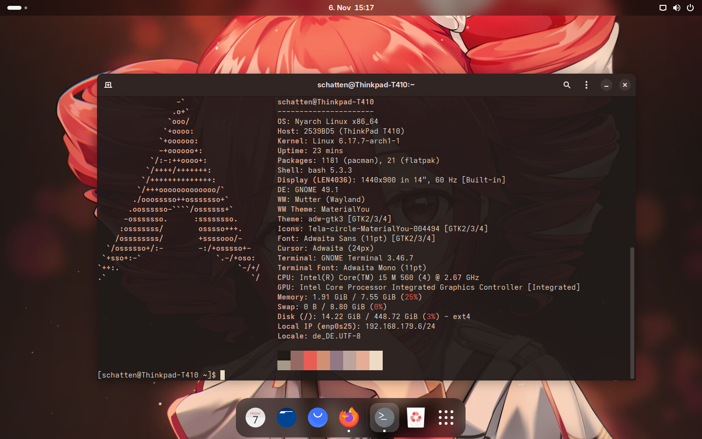 I don’t know yet if Nyarch Linux will stay on my laptop.