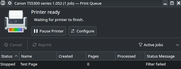 Everytime I try to print a test page it gives me the same error. Is there anything I need installed?