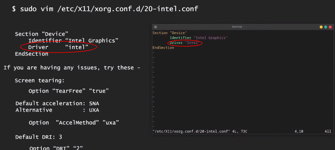 There are two parts to the video. One is Intel Drivers and the other is modesetting. What i have written is what i see for modesetting.