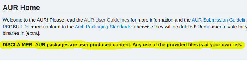 Or perhaps, we can be discerning about what food we consume, and packages we install from the AUR. The AUR should always be approached with some degree of discernment.