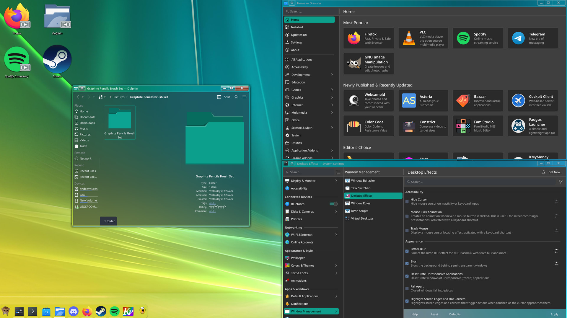 I was curious on whether its possible to make System Settings and the Discover background transparent blurred. Similar to how dolphin is. Im using a Kvantam theme which makes the Dolphin file manager background transparent. Ive treid going into the Window Rules, but that makes the whole window transparent, id like to still have like font and icons and what not full opacity. Basically just how it is on dolphin lol