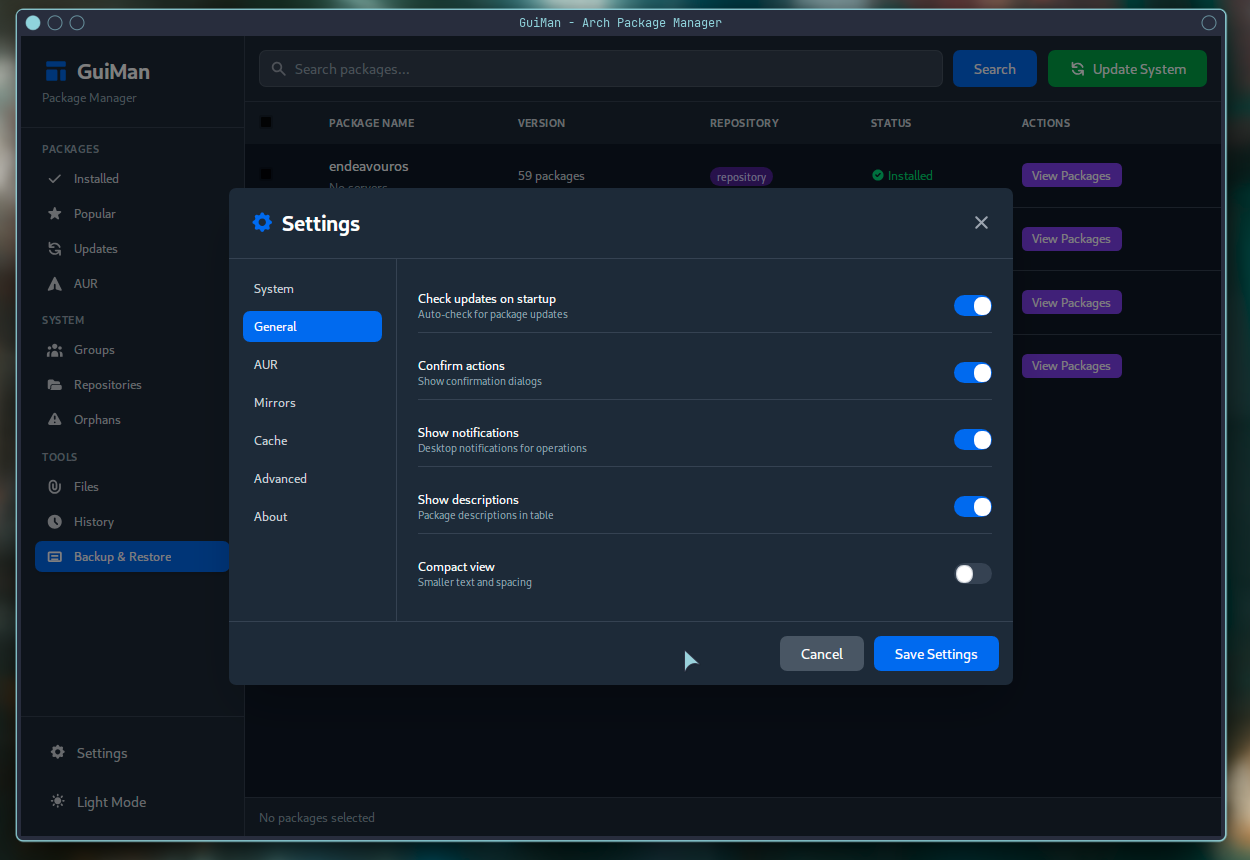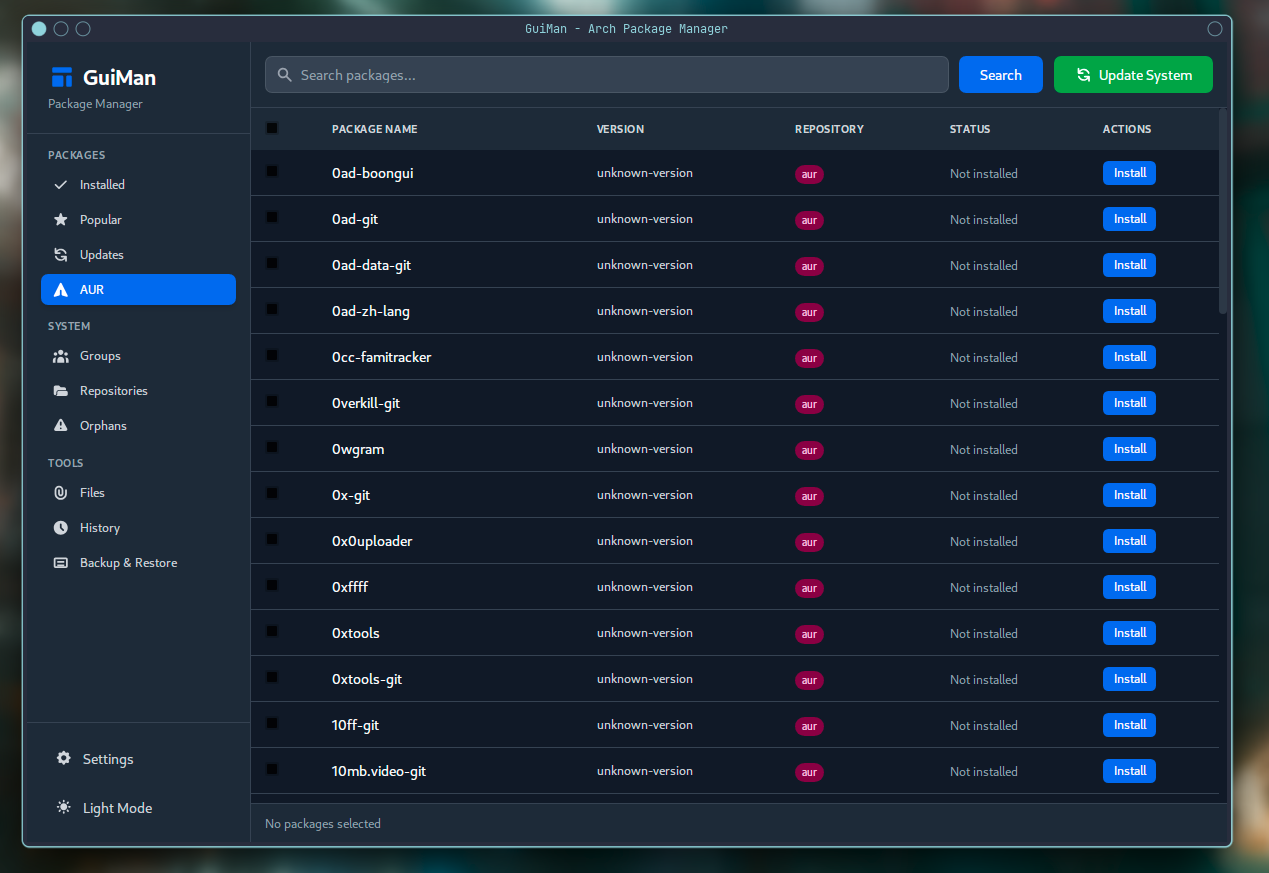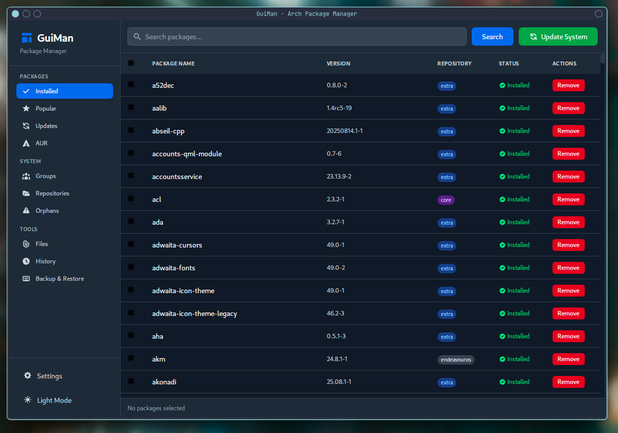 It’s a full GUI version of pacman and your favorite AUR helpers (yay/paru). Everything you do in the terminal: installing, updating, removing, searching—now has a visual, click-friendly interface.