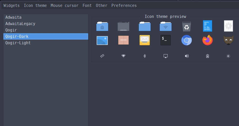 Adding my Icon theme from /usr/share/icons/Qogir-Dark/index.theme: