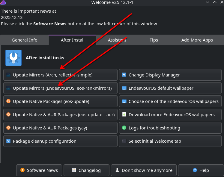 No because when I click on “Update mirrors” I get