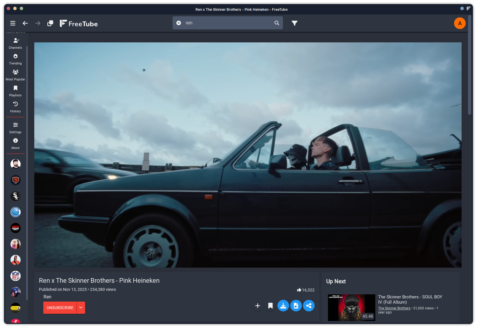 Well, my actual YouTube subs are too many. I’ll need to take time an unsubscribe to the ones I no longer use. Now, I’m adding subs to FreeTube I view regularly, like REN…