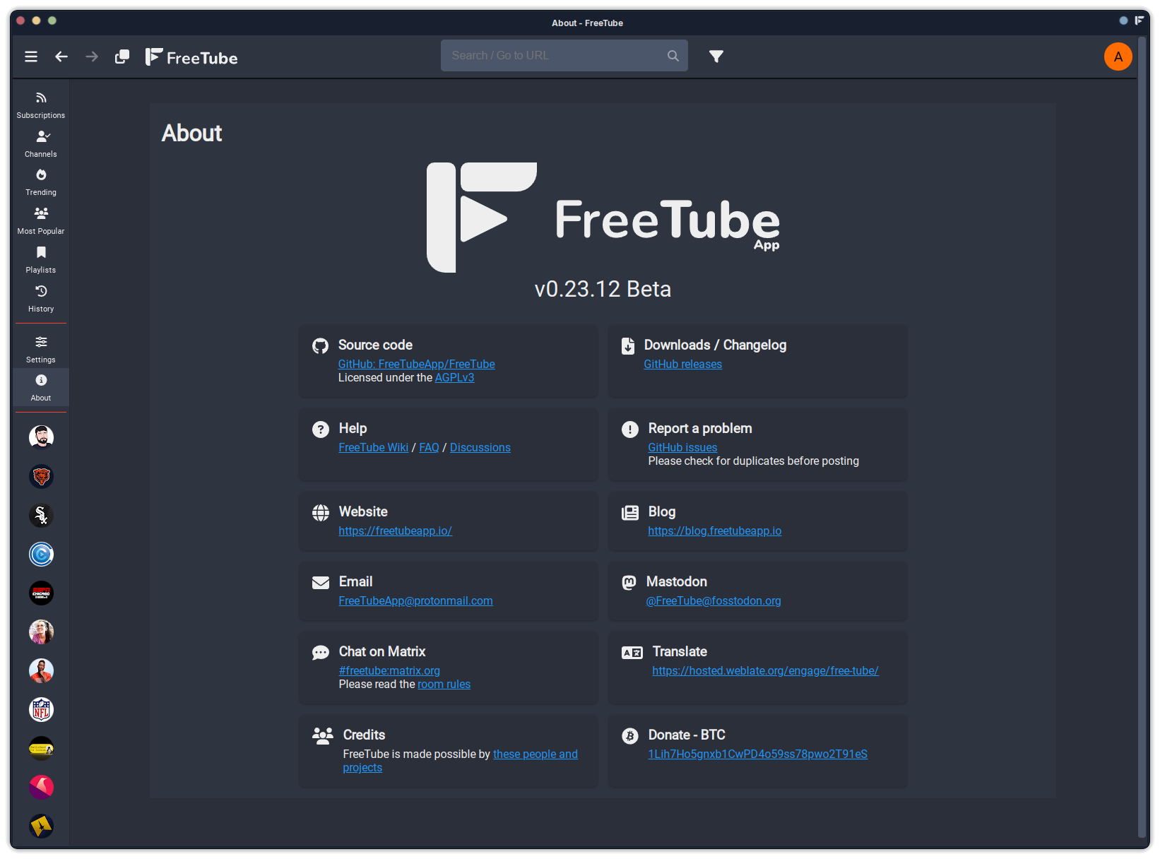 I know FreeTube has been around a while now. I’ve just never given it a go. Not sure why, really. But I’m glad I’ve taken the dive. I just installed it about 30 minutes ago. I’ll continue adding my favorite subs and enjoy the ride.