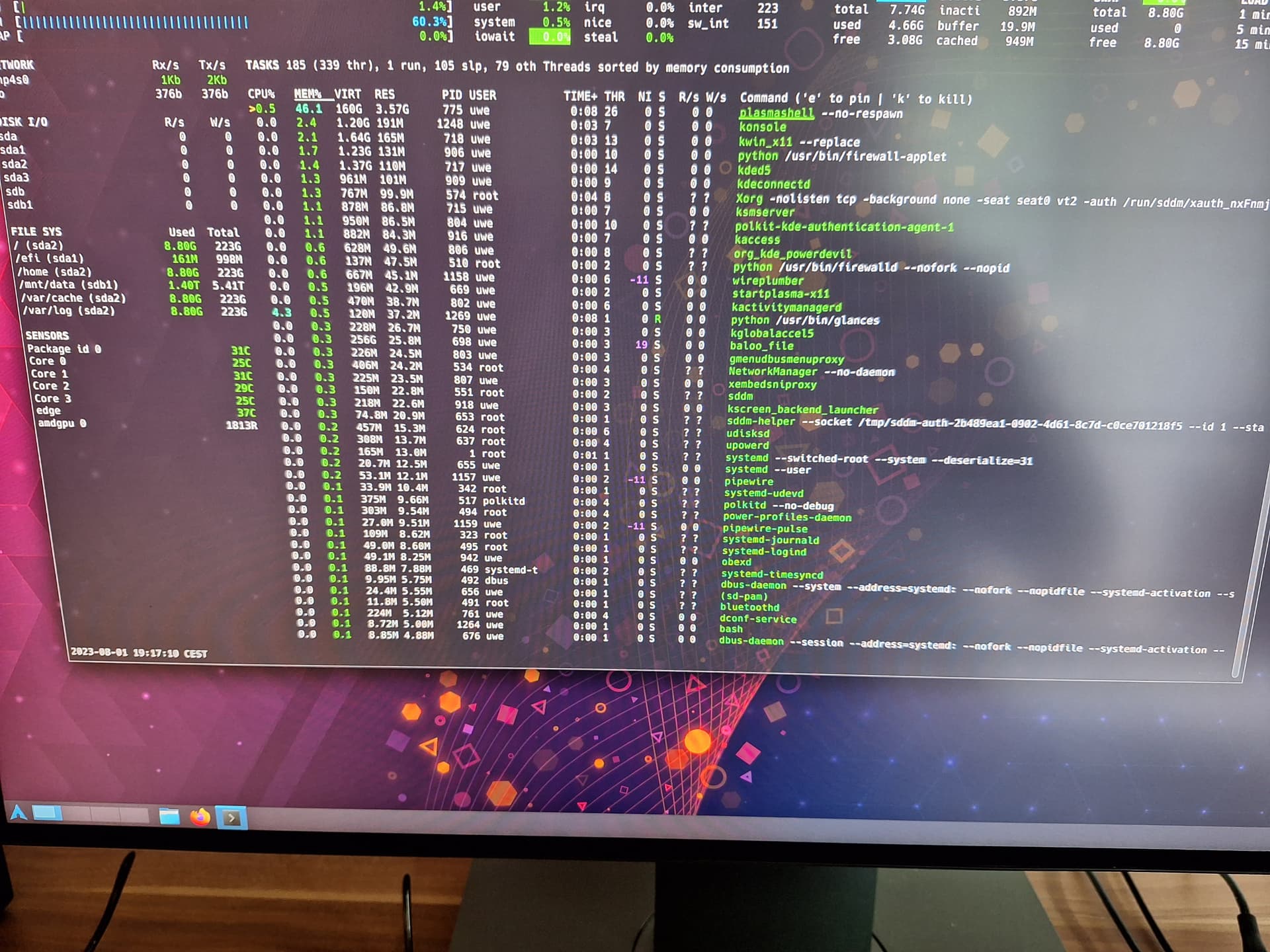 @joekamprad glances zeigt in x11 nach dem Neustart 46% Auslastung mit der plasmashell an:
