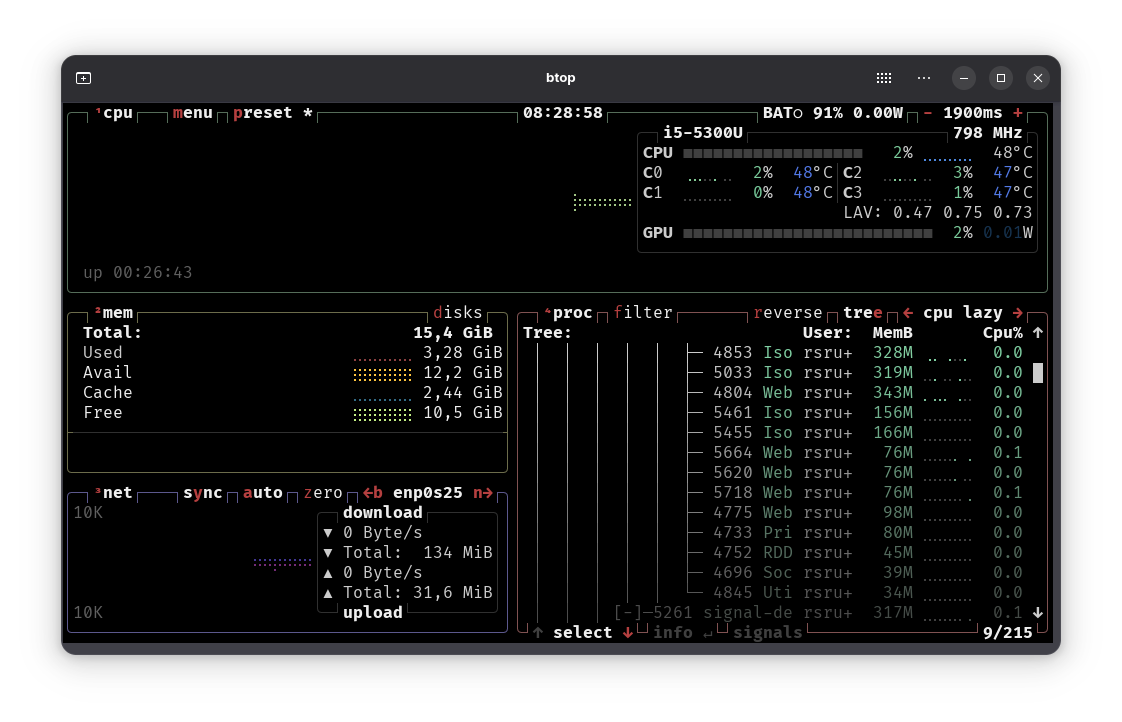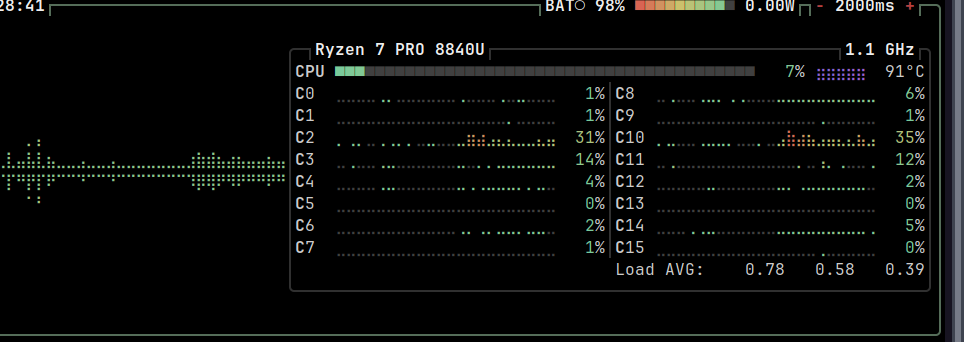 I would suggest you install something like ‘btop’ so we can see what your laptop is doing when it is getting hot. Here is an example of the output: