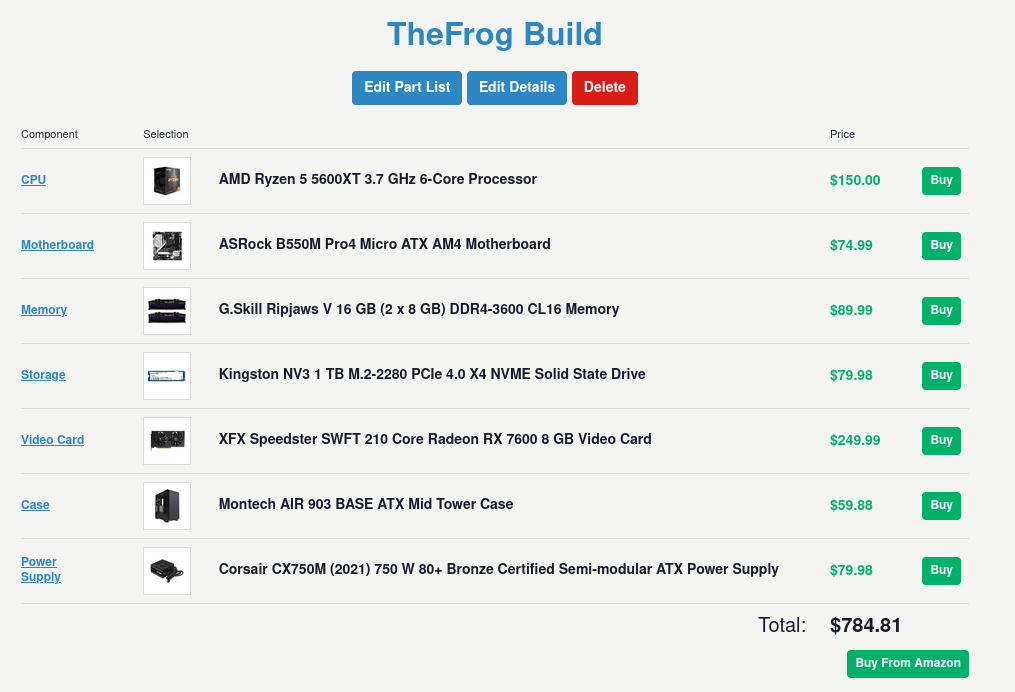 Case and power supply included, all in all I was at around €550 without the graphics card.