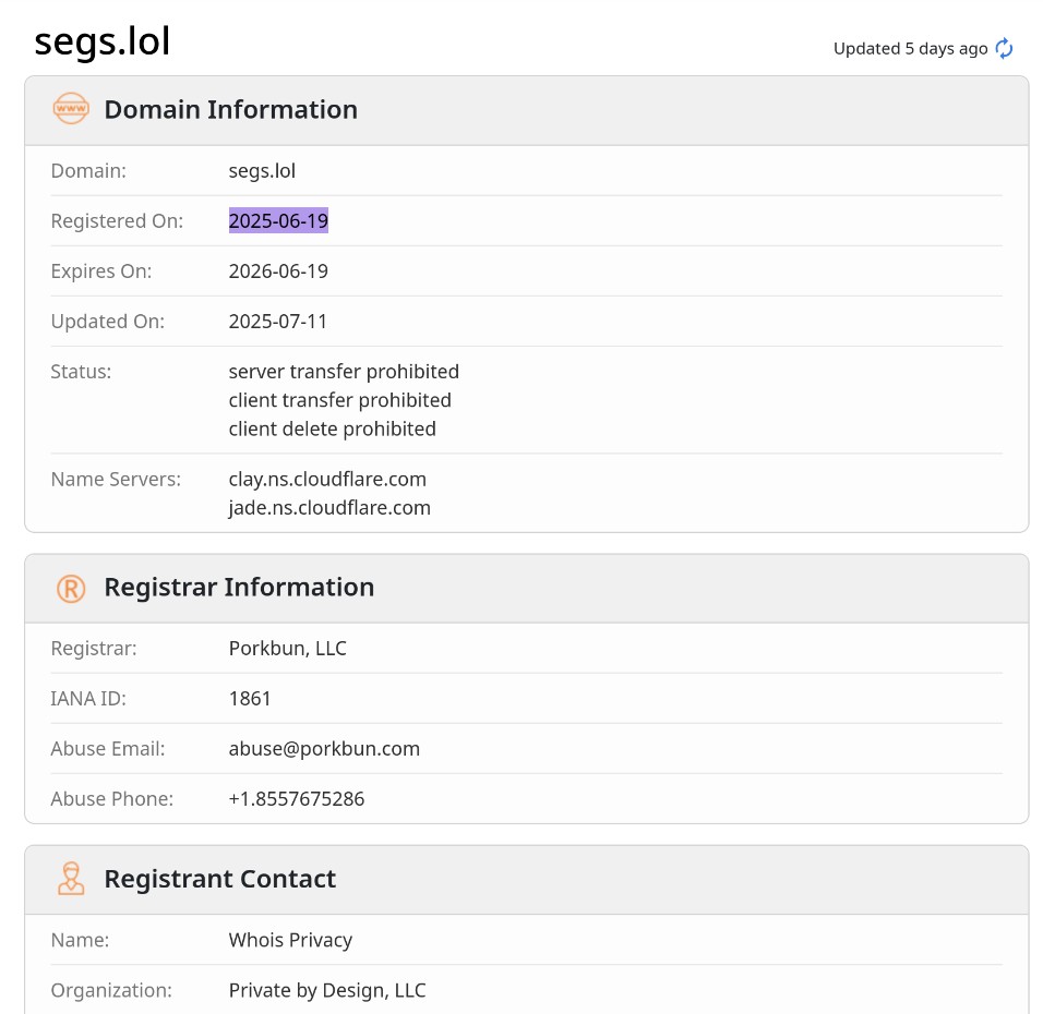 The Linxiac article is revelatory. The infected chrome package disables all the configuration done by google chrome and stored in ~/.config/chrome-flags.conf then it goes ahead and contacts the server segs.lol. After doing a reverse lookup, ping and DNS query it is found that this server has a IP address of 104.21.90.193 and is hosted in USA. This domain was registered on June 19th 2025.