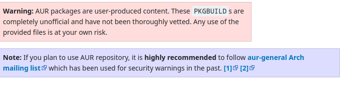 aur also has pgp but there is a certain way to use aurvotes etc… Makes it easier if 0 votes to check if its new but dont use it as a extra repo