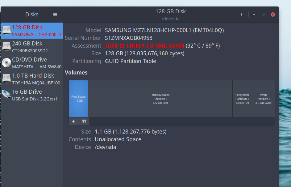 Device Model: SAMSUNG MZ7LN128HCHP-000L1