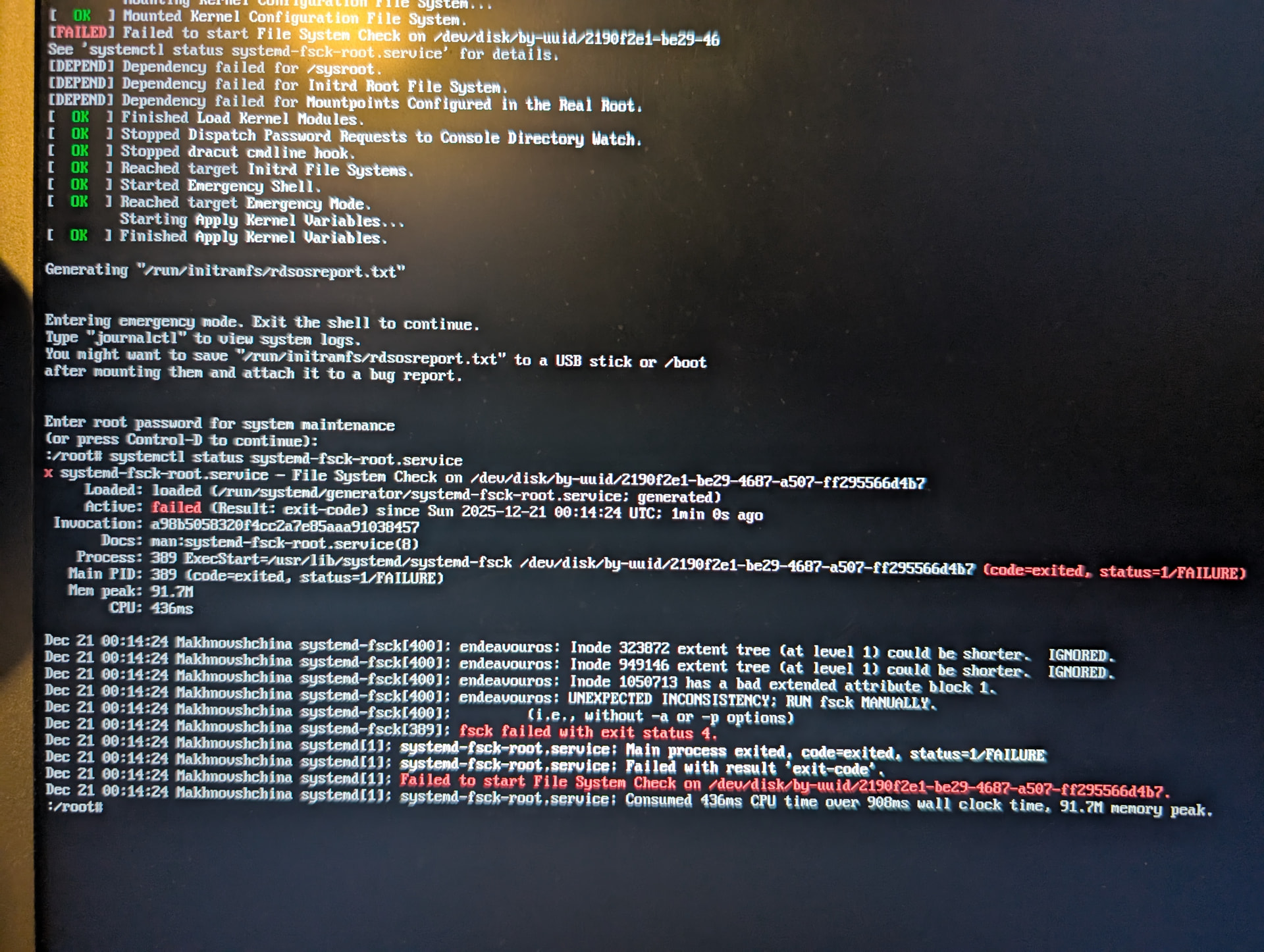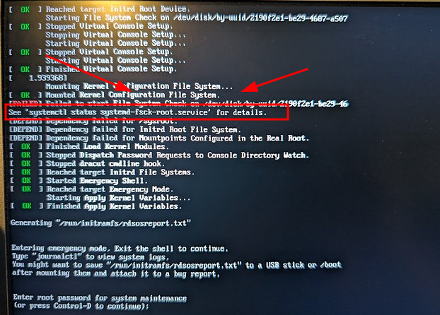 Well then how about please being specific then? I entered maintenance mode and entered journalctl which is the only command I see there on my screen in the initial screenshot.