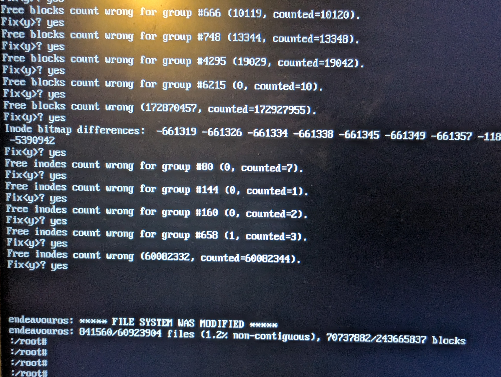 The boot time fsck checks might end up saying "UNEXPECTED INCONSISTENCY; RUN fsck MANUALLY."