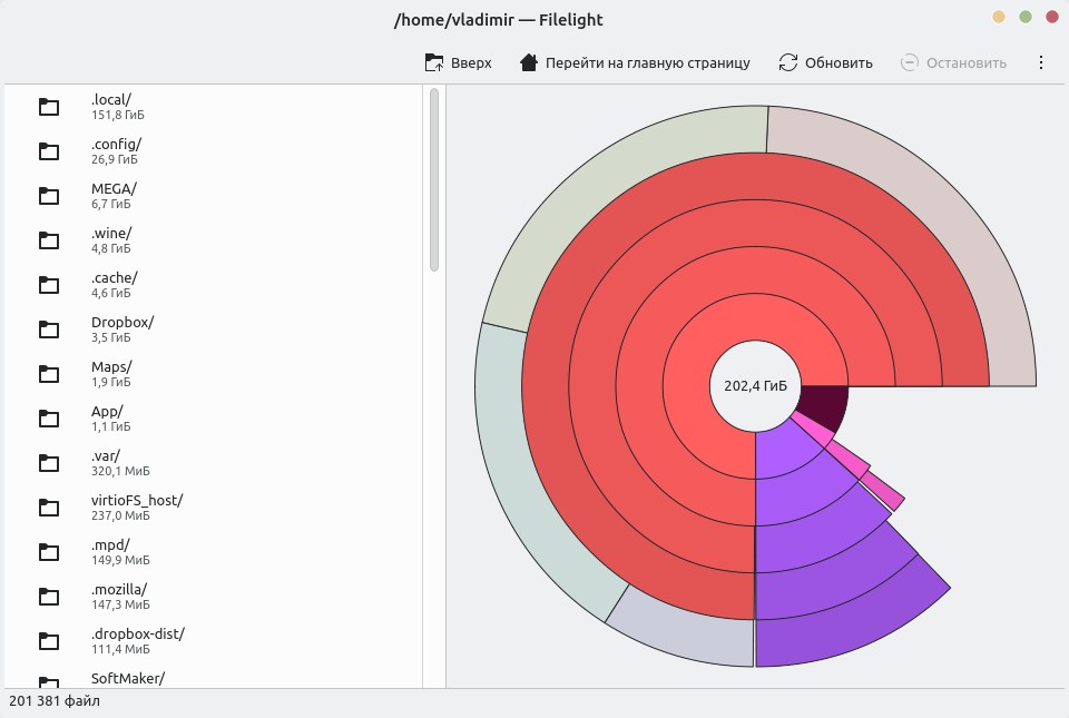 Seems there’s a lingering issue with Filelight not showing the pie chart in Wayland.