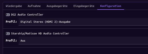 Initially the sound worked out of the box. However, after unplugging the HDMI cable and putting it in a different port in my GPU accidentally, sound has stopped working. I have tried different troubleshooting methods, including manually selecting output device both via GUI or terminal, reinstalling OS, etc. The initial version I used when it work, it was the latest version of Endeavour 25.1.1-1.