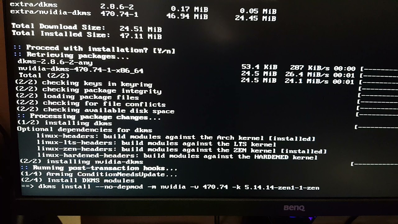 This Guy is Eric Duboix from Arcolinux  showing how to install nvidia-dkms driver if you are running zen kernel…  Not the same issue if you are on a optimus system.