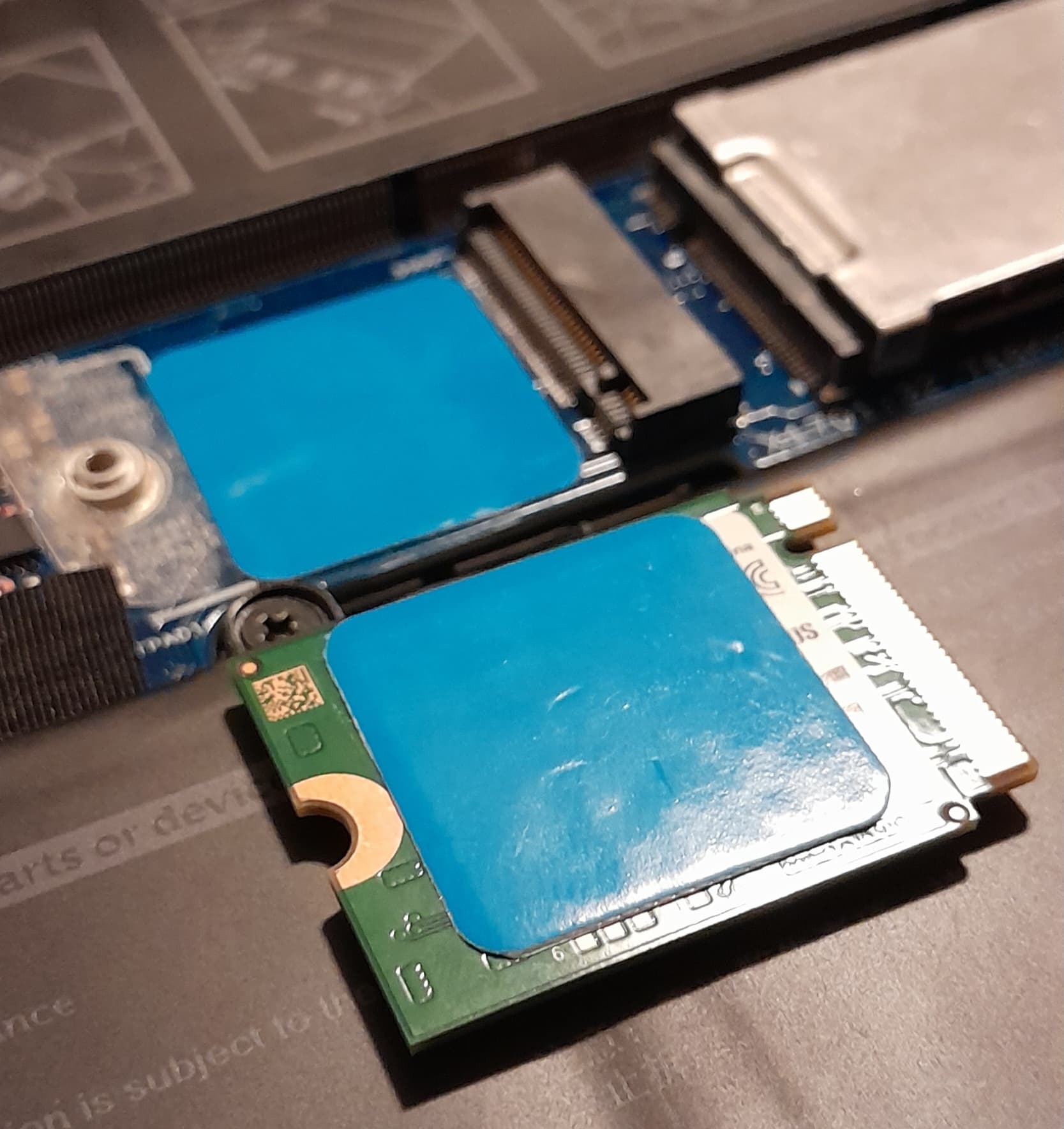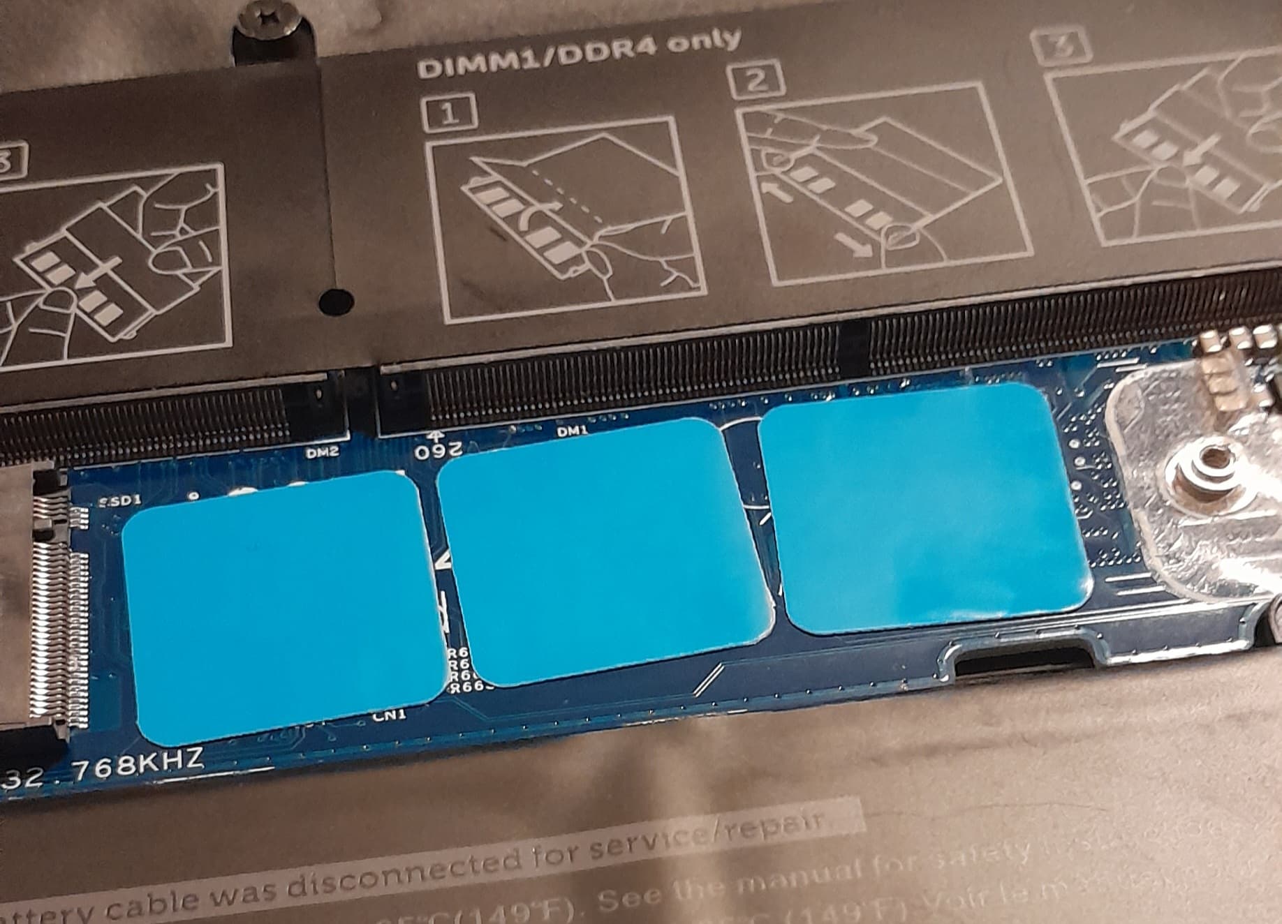 For instance, the four padd I apply, you see on the left angle, for 2230 m.2, this touch laptop back panel when I close bottom cover, Iām hear the sticky of these.