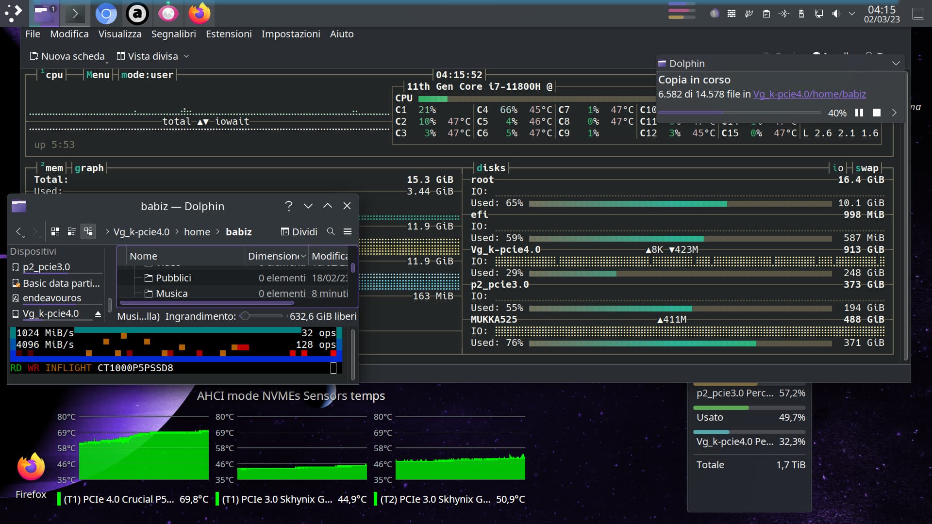 By other hand we have Kubunthings 22 and half, on new Crucial P5 linked at PCIe 4.0 bus, 60 Gbps lane, Kde with kernel 5.15 somethings, so my statement follow for finding a way to optimize performance for EnOS users cause on 'buntu looks all pretty good, Ican report some key difference between distro, and Iām very sad cause unable to get same highi performance when are on EnOS.