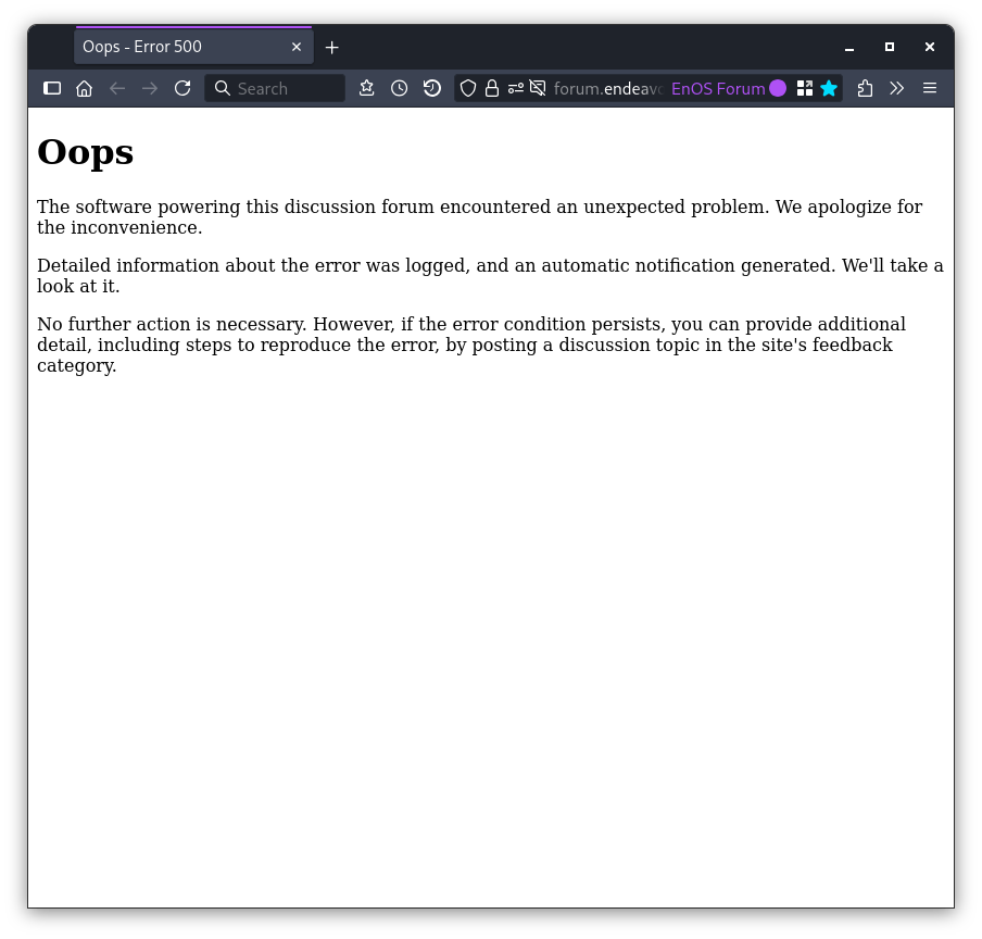 Anyways, the message about the forum software encountering an unexpected problem was new to me.