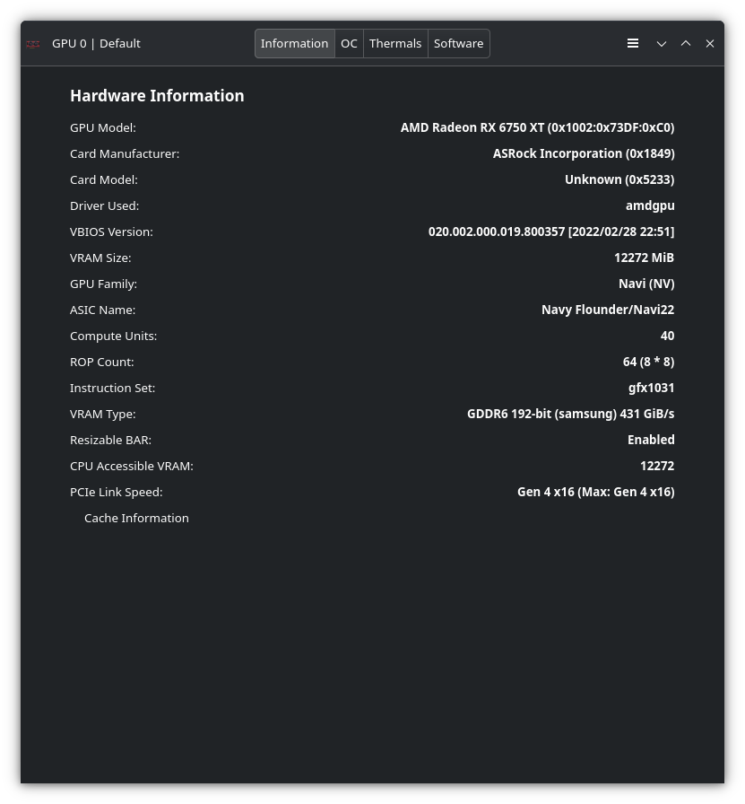0b:00.0VGAcompatible controller: Advanced Micro Devices, Inc. [AMD/ATI] Navi 22 [Radeon RX 6700/6700 XT/6750 XT / 6800M/6850M XT] (re
